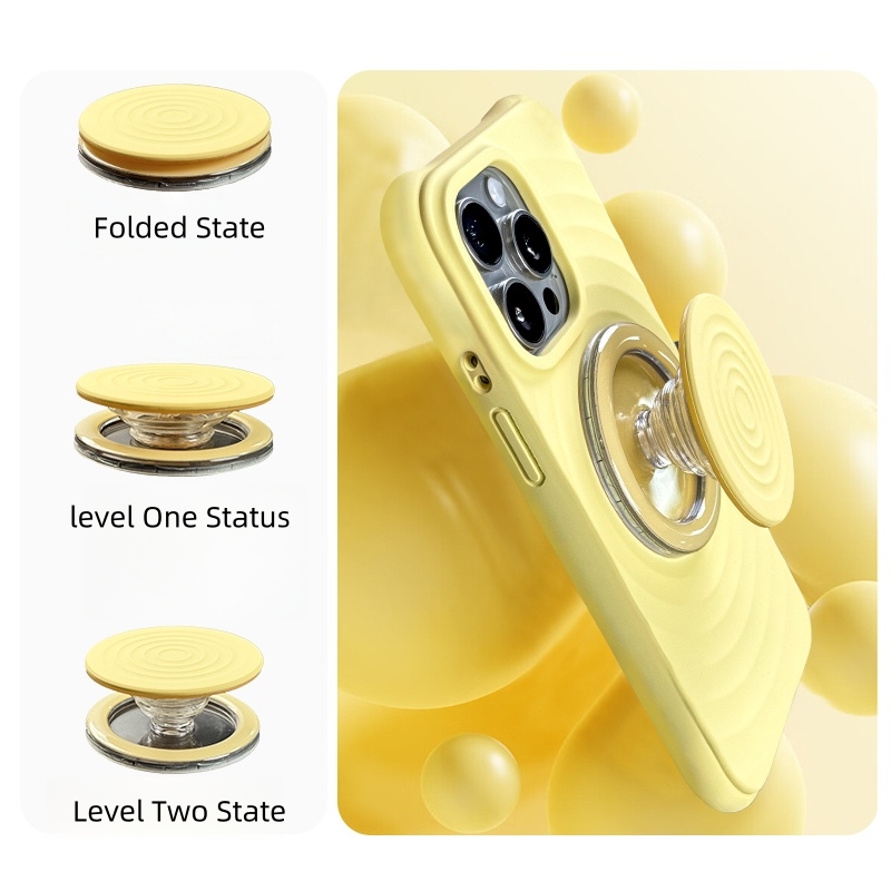 The S37 3D Wavy Magnetic Folding Phone Holder is a multi-functional accessory designed for MagSafe-enabled iPhones, featuring a unique 3D wavy texture that enhances grip and adds a modern aesthetic. Crafted from real silicone, it is anti-fingerprint, oil-proof, and stain-resistant, keeping your device clean with daily use. The magnetic folding design offers 2-level height adjustment, acting as a stable stand for hands-free viewing and a secure hand grip to prevent accidental drops. It attaches seamlessly to MagSafe-enabled cases and is available in 13 vibrant colors to match your style.