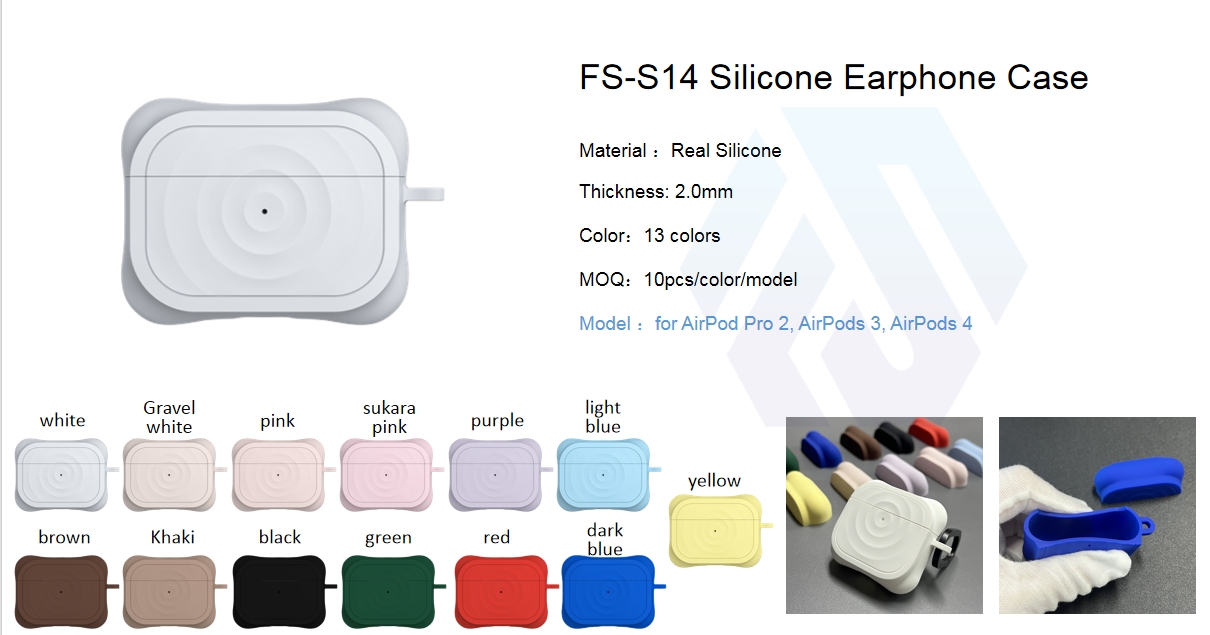 The S14 Liquid Silicone Earphone Case is a premium protective solution designed exclusively for AirPods Pro 2, AirPods 3, and AirPods 4, crafted from 100% real liquid silicone with a 2.0MM thick, shock-absorbent construction. It features a 1:1 seamless fit using real machine data for precise molding, delivering 360° all-around protection against drops, scratches, and impacts. The case offers a soft, anti-fingerprint hand feel that resists stickiness from hand sweat, and is available in 13 vibrant colors to match your personal style, making it ideal for daily use and travel.